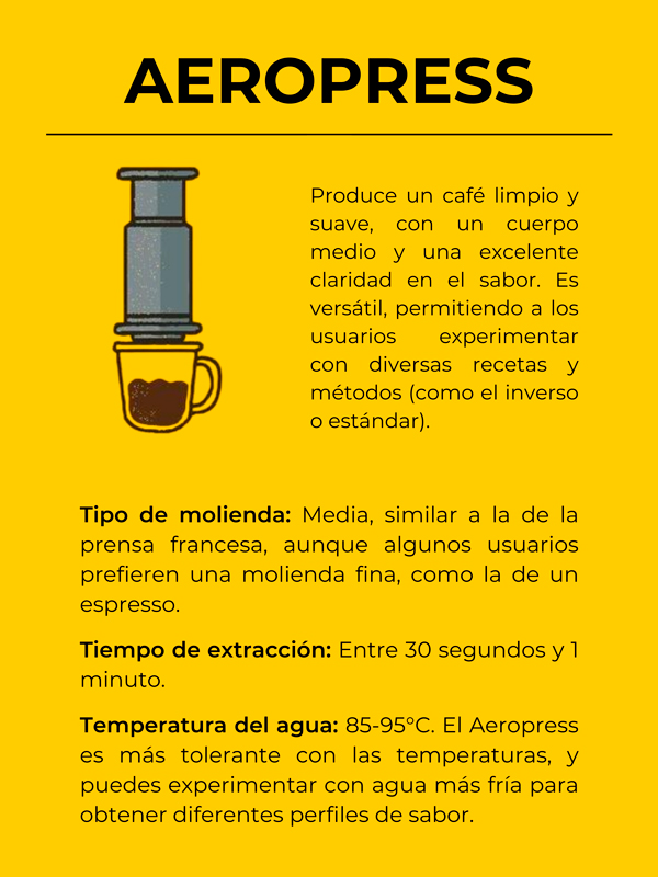 Una de las razones de la popularidad del Aeropress es su versatilidad. Existen muchas variaciones en el proceso, lo que permite a los usuarios experimentar con diferentes tiempos de infusión, temperaturas y proporciones de café a agua. Esto lo hace atractivo para quienes desean tener control sobre el perfil de sabor del café.